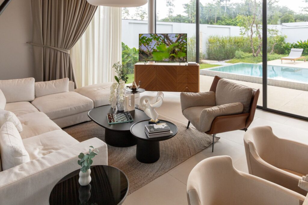 Комплекс расположен в престижном районе Чернгталай, всего в нескольких минутах от пляжей Банг Тао и Лаян. Здесь сочетаются уединённость, природа и развитая инфраструктура — рядом находятся лучшие рестораны, торговые центры, международные школы и гольф-клубы.