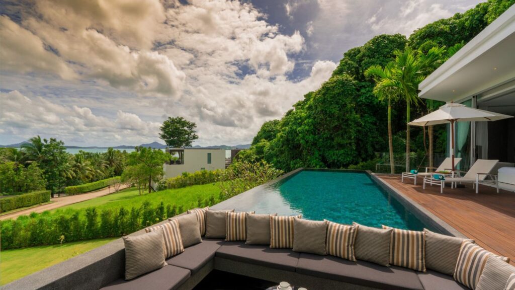 Пятиспальная вилла с частным 12-метровым инфинити-бассейном объединяет современный дизайн, открытые пространства и уютную атмосферу. Просторные спальни с ванными комнатами оформлены в светлых тонах и оснащены всем необходимым для комфорта, а панорамные окна открывают захватывающие виды на Андаманское море.