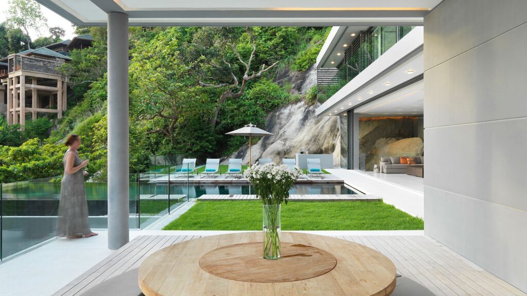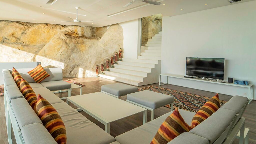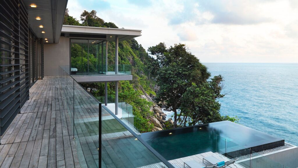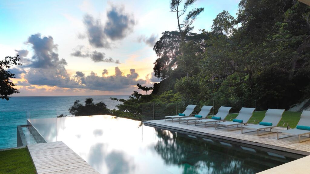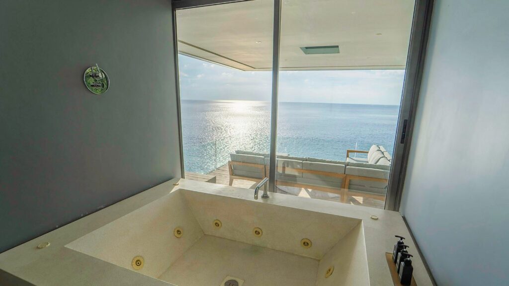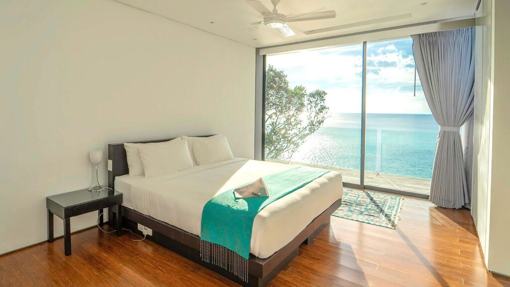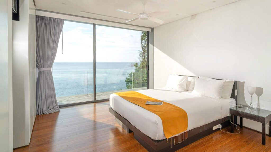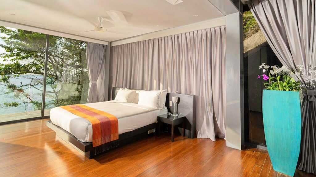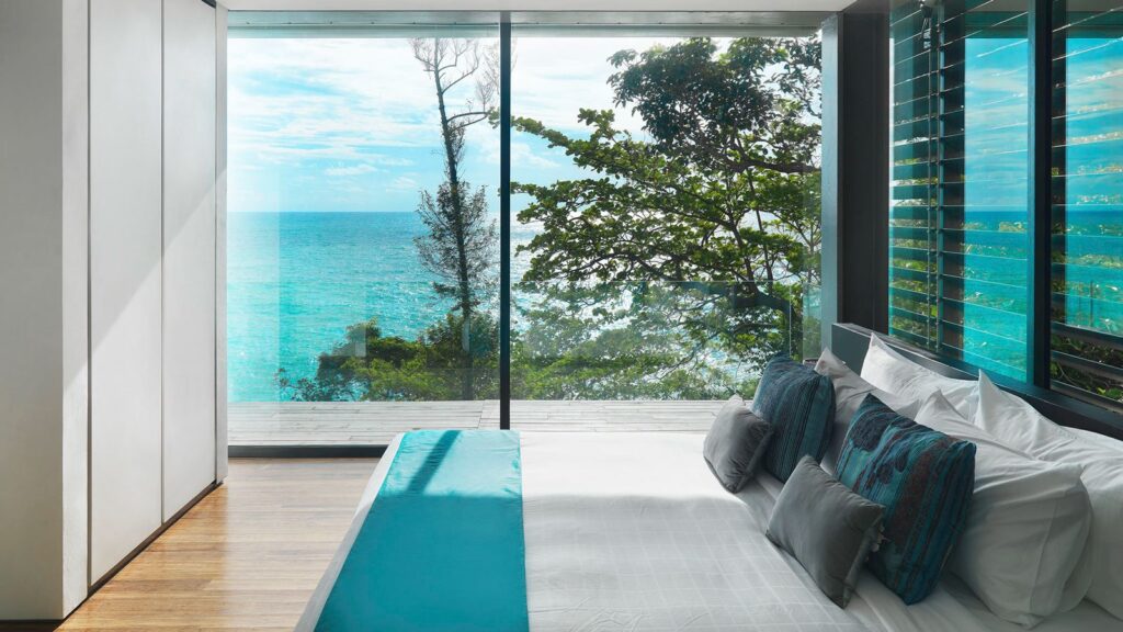 Каждая спальня оборудована индивидуальной ванной комнатой, спутниковым телевидением и панорамными окнами с видом на Андаманское море. Главная спальня предлагает частный балкон с терраццо-ванной под открытым небом и 270-градусный обзор океана.