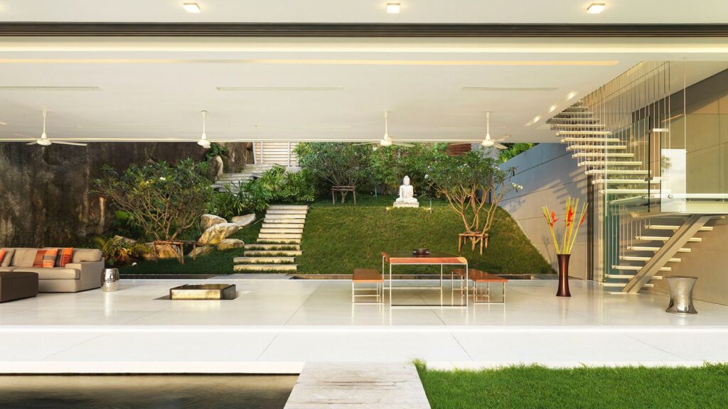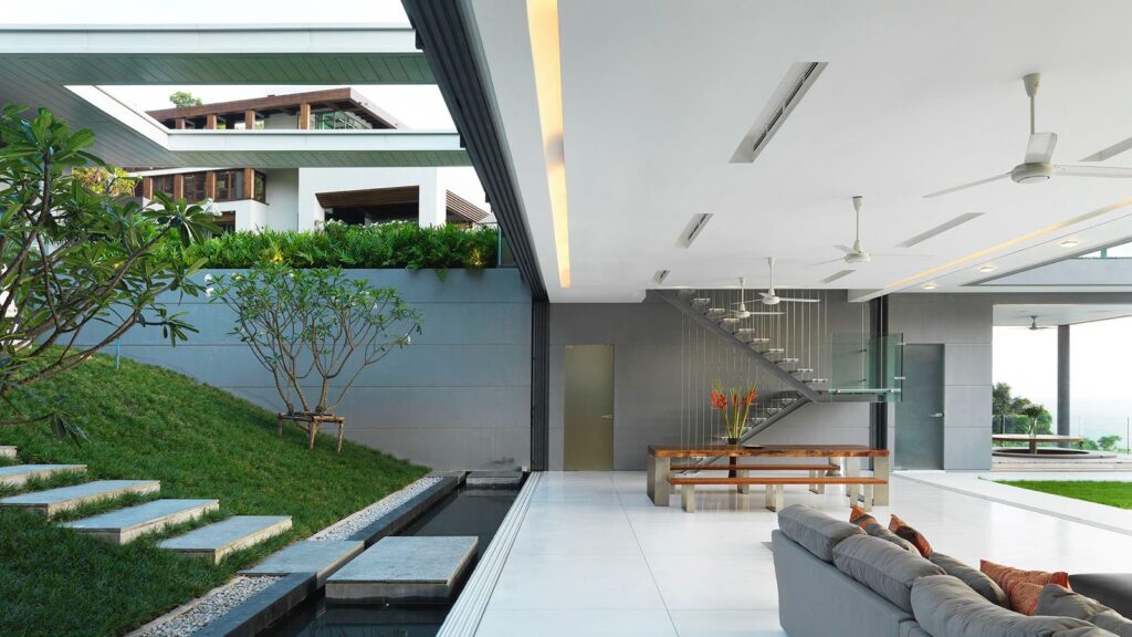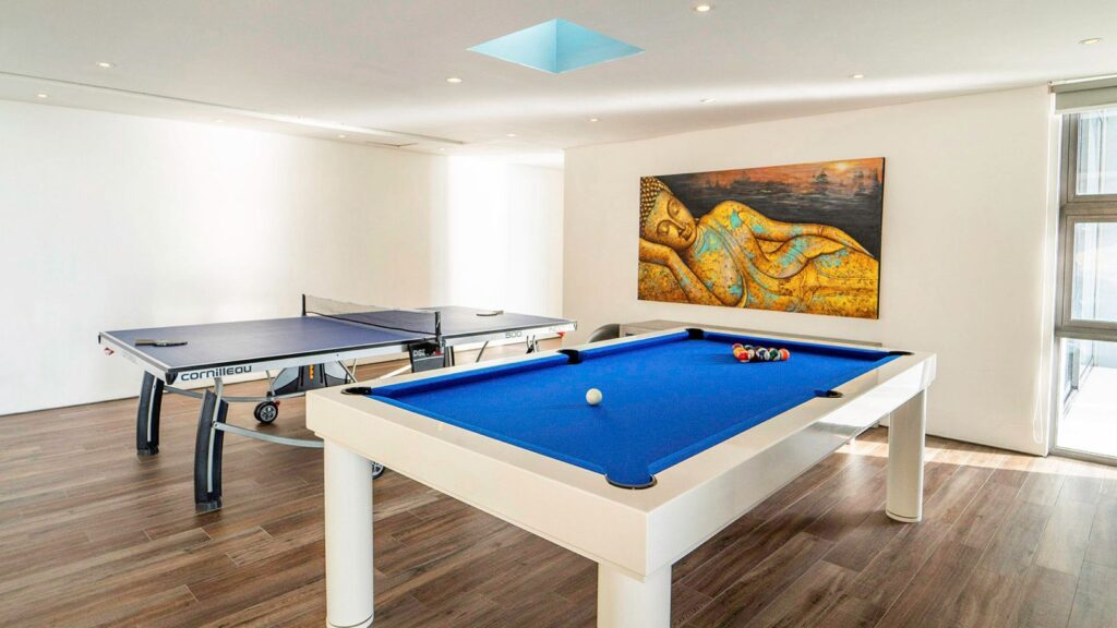 Центром виллы является 15-метровый инфинити-бассейн, вокруг которого расположены просторные зоны отдыха, как под открытым небом, так и внутри дома. Для досуга гостей предусмотрены семейная комната с Apple TV, бильярдом и настольным теннисом, гостевая кухня, джакузи и площадки для барбекю. Вилла идеально подходит для приватного отдыха, вечеринок и камерных мероприятий — вместимостью до 40 человек.