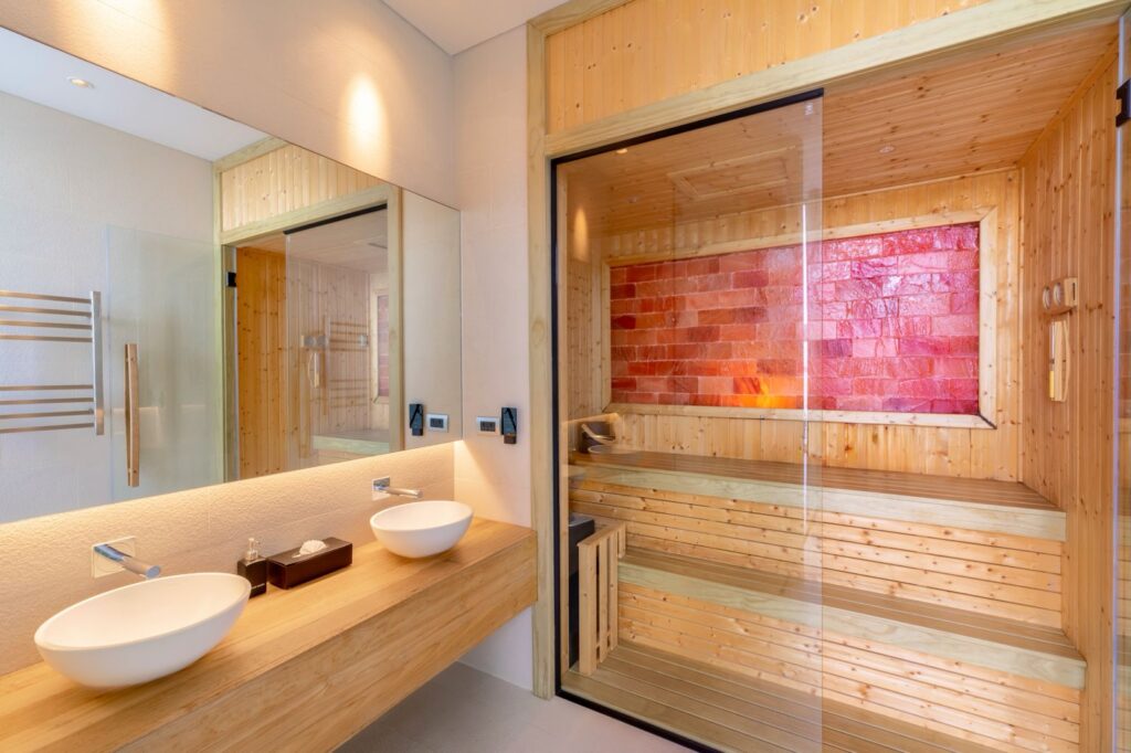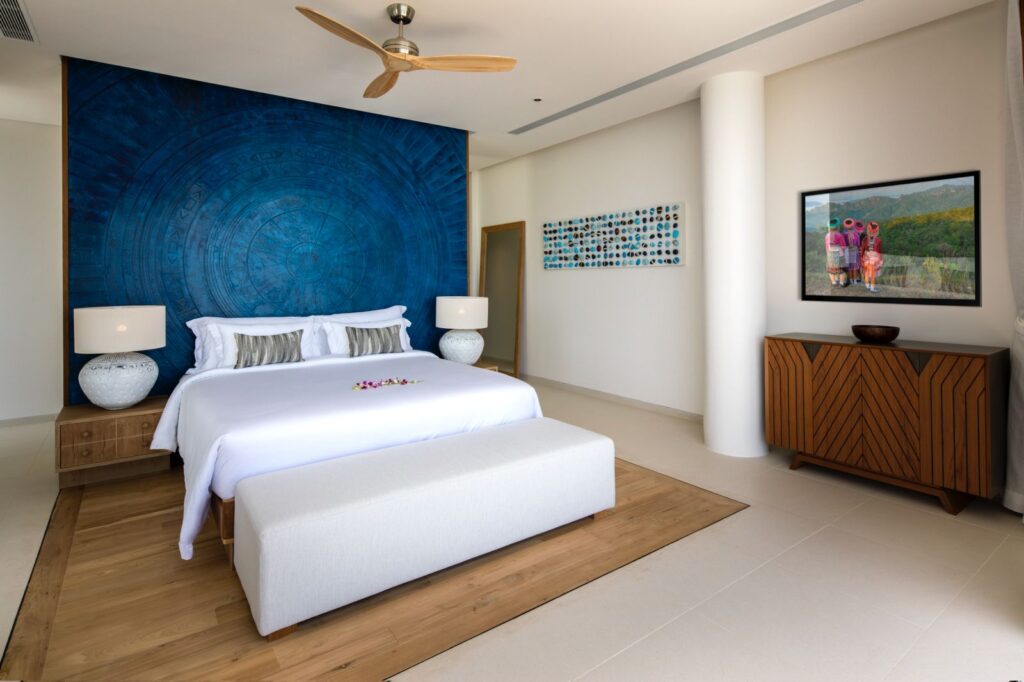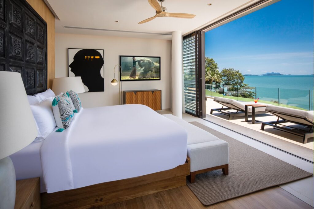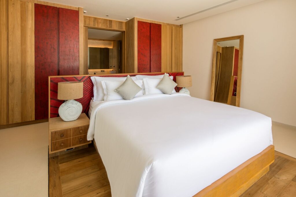 На четырёх уровнях размещены 8 просторных спален с ванными комнатами, включая 2 мастер-сьюта с террасами и панорамой на море. Каждая спальня оборудована телевизором Smart TV, системой SONOS, сейфом, гардеробной и ванными комнатами с панорамными окнами.