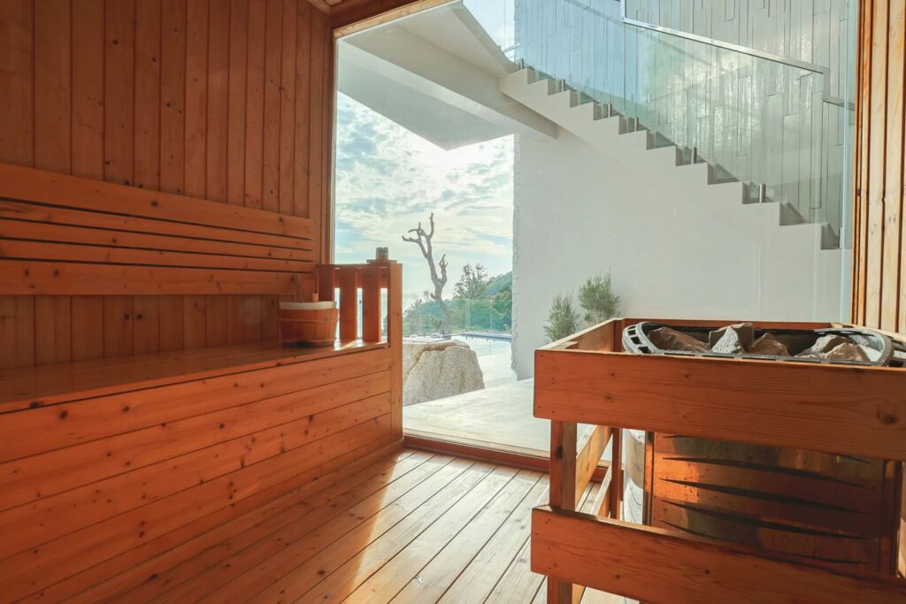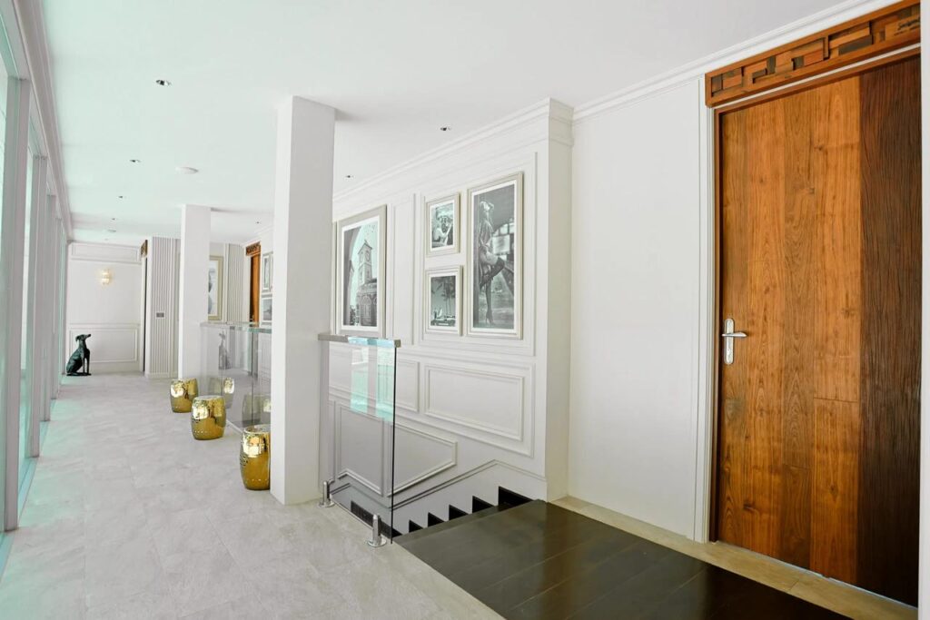 Каждая из девяти спален оборудована ванной комнатой, кондиционером, телевизором, сейфом и балконом. Вилла рассчитана на размещение до 18 гостей.
