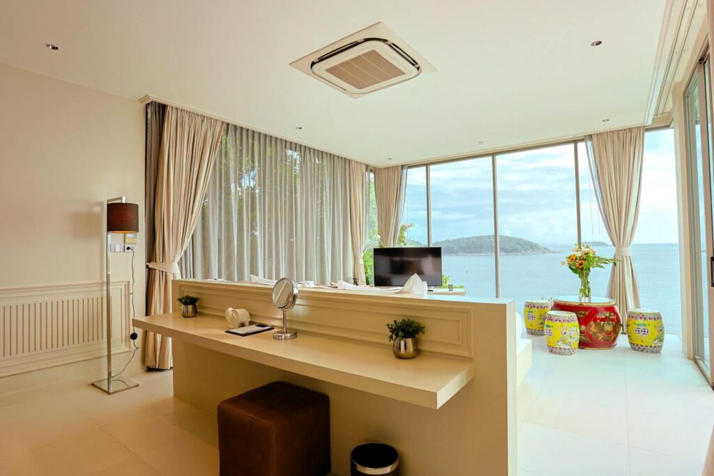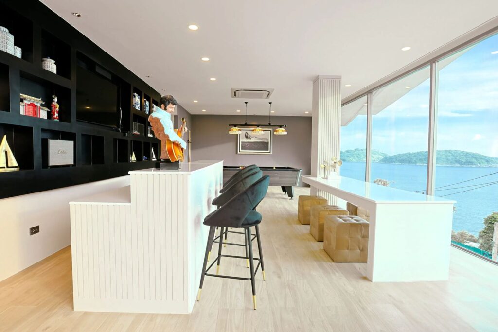 Архитектура виллы сочетает современный минимализм, природные материалы и открытую планировку, где интерьер плавно переходит в пространство террас с видом на море. Из каждой комнаты открываются панорамные виды на тропическую зелень и бескрайние воды Андаманского моря.